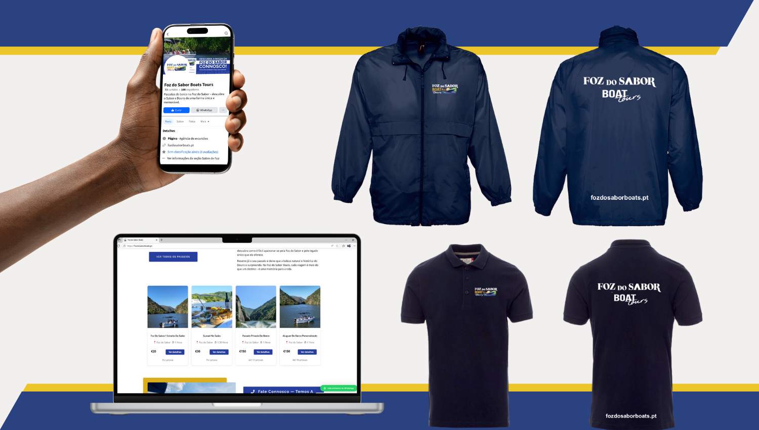 Para a Foz do Sabor Boats, empresa de passeios fluviais no Sabor e Douro, desenvolvemos um branding completo: identidade visual, site com forte apelo emocional e visual, presença consistente nas redes sociais e mupis publicitários espalhados pela região. O objetivo: transmitir a magia do rio e a autenticidade das experiências. Resultado: marca reconhecida e reservas constantes.